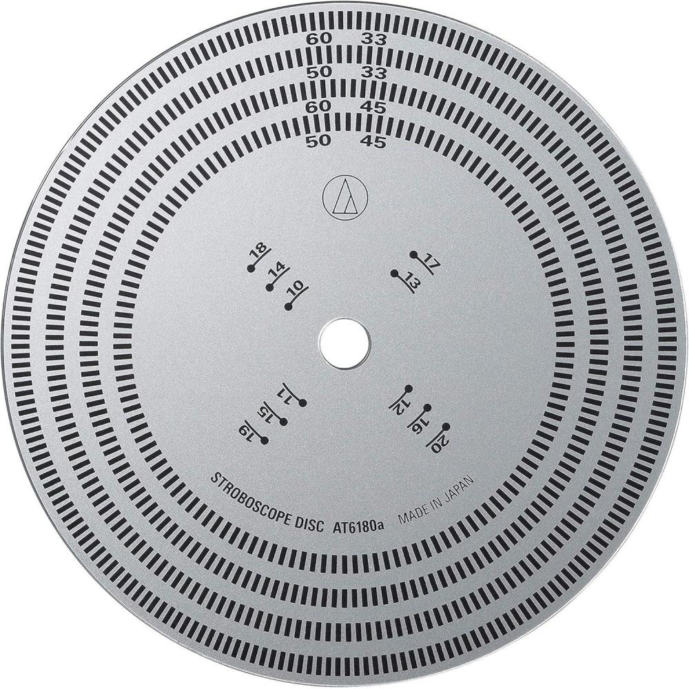 The AT6180A stroboscope enables you to check the rotation Speed of your turntable. Features high-contrast markings for 33-1/3 and 45 RPM at both 50 and 60 Hz. Also includes 10-20 mm overhang gauge.